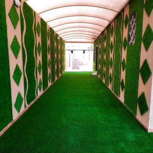 توريد وتركيب جميع أنواع العشب الصناعي (العريض – النحيف – المتداخل) لحدائق المنازل والأسطح والفلل والقصور والملاعب. العشب أو الثيل الصناعي لا يحتاج إلي جز أو عناية