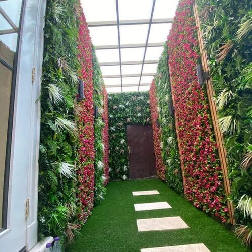 يعتبر تركيب العشب الجداري (الجدران الخضراء) خيارًا ممتازًا لمن يرغبون في إضافة لمسة طبيعية وجمالية إلى الأماكن الداخلية والخارجية، سواء في المنازل أو المكاتب أو الفنادق أو المرافق العامة. يتم تصميم هذا النوع من العشب للتثبيت على الجدران، مما يخلق مظهرًا ملفتًا وأنيقًا يجمع بين الطبيعة والأناقة. ويتمتع العشب الجداري بالعديد من المزايا، بما في ذلك عدم الحاجة إلى الري والصيانة المستمرة، وقدرته على تحسين الجو العام وتصفية الهواء بفضل قدرته على امتصاص الغبار والروائح الكريهة. من الجدير بالذكر أن العشب الجداري يُقدم بتشكيلة واسعة من الألوان والأنماط، مما يتيح للأشخاص اختيار الأسلوب الذي يتناسب مع ديكور المكان.