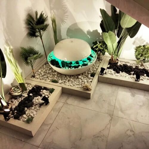 نقوم بتصميم وتركيب جميع أنواع وأشكال النوافير سواء داخل المنزل أو في حدائق المنازل والفلل والقصور. نقوم بتوريد وصيانة كل أجزاء وقطع غيار النافورة من مضخة وخامات واضاءة. يقوم بتصميم وتركيب النوافير المنزلية فريق متميز من المهندسين والفنيين بمهارة عالية. شركة لمسة المستقبل تقدم لكل عملاءها افضل تصميم وتركيب للنوافير الصناعية داخل الحديقة المنزلية، حيث نتميز بالتصميم المميز والحديث الذي تحلم بة ليس فقط التصميم الجيد، بل الاهم من ذلك الدقة في العمل لان الاهم في صناعة النافورة هي جودة الخامات المستخدمة من حيث المضخات او السيراميك، إلخ. فشركة لمسة المستقبل لتنسيق الحدائق في السعودية تحرص على تقديم أعلى جودة خدمة وأفضل أسعار تصميم وتركيب نوافير في المملكة العربية السعودية.